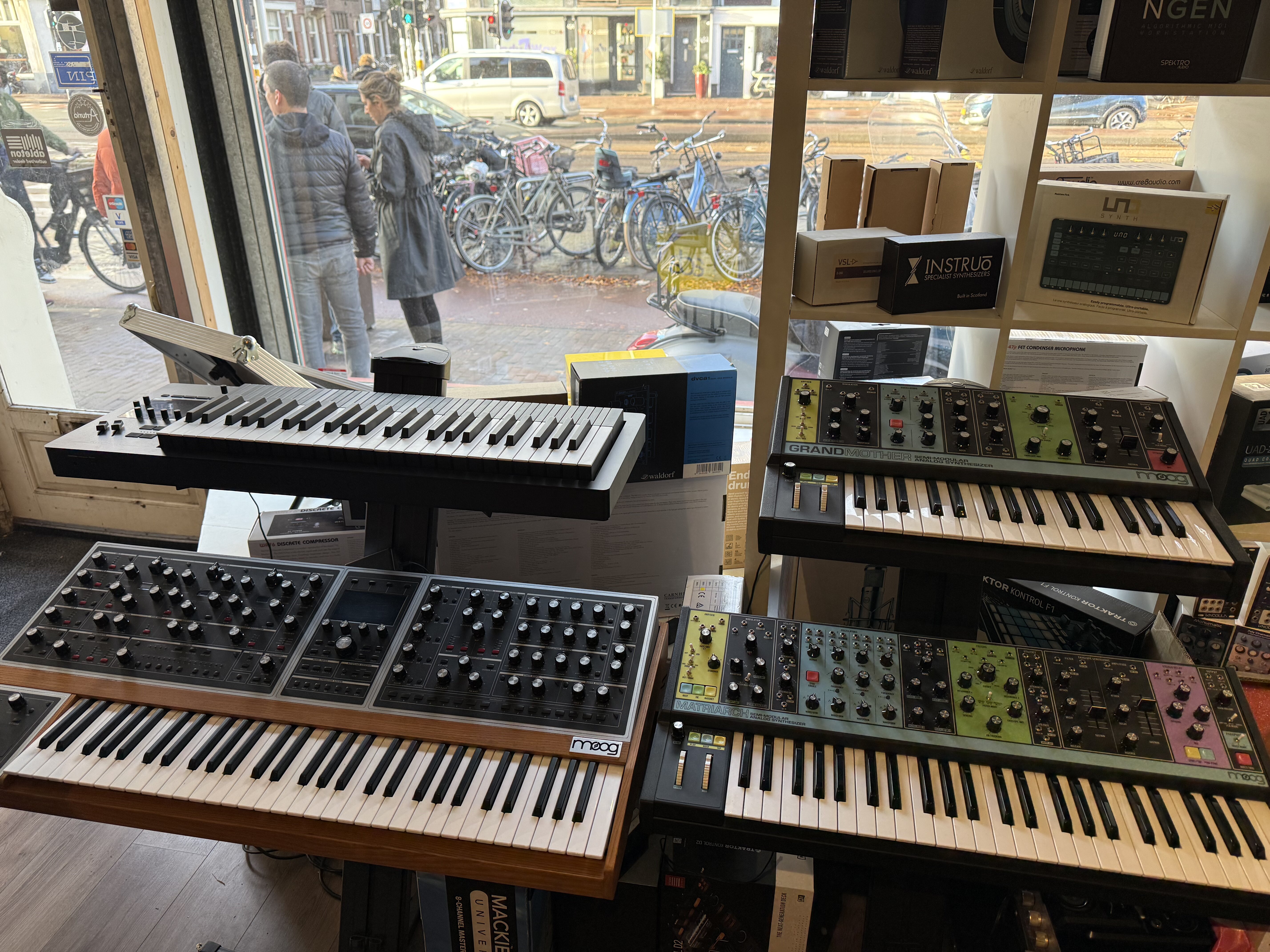 Midi Amsterdam, located at Overtoom 431, specializes in studio equipment, DJ gear, and modular synthesizers, with particular expertise in Eurorack systems. The shop is known for its extensive product selection and knowledgeable staff who provide tailored advice to electronic music enthusiasts. For synthesizer lovers, it’s a paradise; walls lined with modules, desktop synths, and all the cables and cases you need to build your dream setup. The showroom offers a hands-on experience that online shopping simply can’t match, making it a must-visit destination for anyone serious about synthesis, (or even synth-curious!) The staff at Midi Amsterdam were all super friendly and eager to talk synths. We can’t wait to go back!